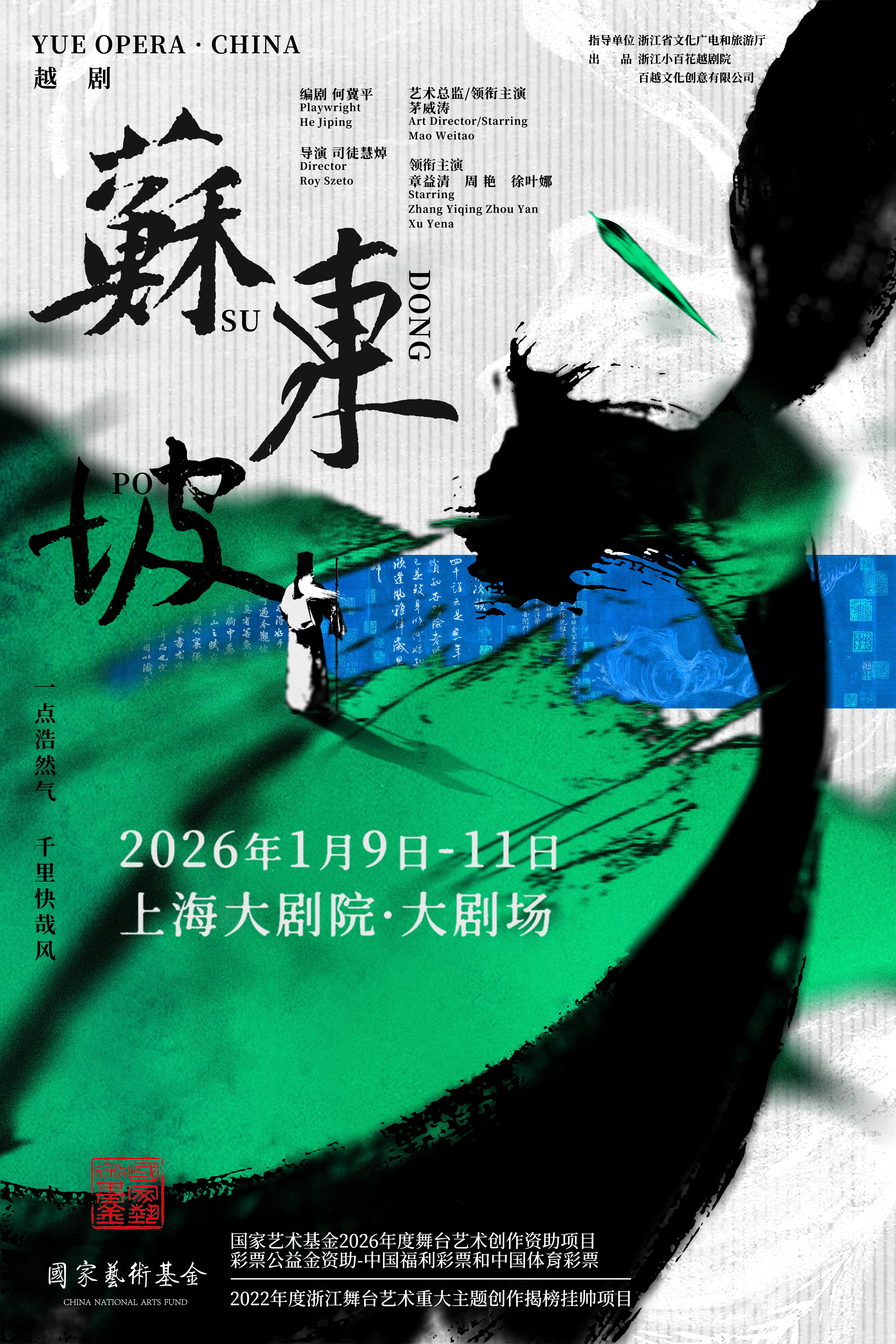 2025 年 12 月 31 日至 2026 年 1 月 1 日,由浙江小百花越剧院、百越文化创意有限公司联合出品的国家艺术基金资助项目、浙江省舞台艺术重大主题创作揭榜挂帅项目越剧《苏东坡》在杭州蝴蝶剧场跨年首演。该剧联合金牌编剧何冀平、香港导演司徒慧焯倾力打造,是国家级非物质文化遗产(越剧)代表性传承人、中国越剧界唯一 “梅花大奖” 获得者茅威涛阔别舞台十年的又一新作。2026年1月9日至1月11日,越剧《苏东坡》将以“老带新AB组模式”登录上海大剧院。