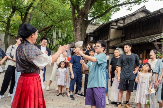 “体验式学习”作为一种“做中学”的教育范式,正在全球教育变革中展现出独特价值。今秋,濮院时尚古镇从当下需求出发,以沉浸式宋文化体验为核心,将古镇的寺湾街转化为一座“不宵禁”的宋代繁华梦境。具体化与与学习有关的动作、活动和实践,激活青少年对知识的情景式记忆。