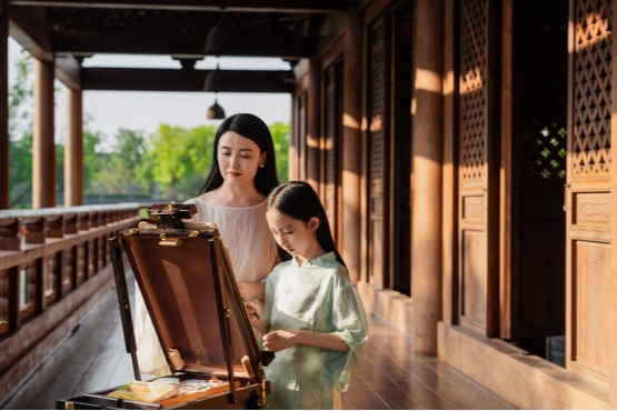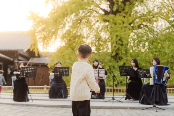 千年银杏树下的音乐会,将创新融合空灵梵音与即兴爵士乐,让传统与现代在自然场域中奇妙共振,为亲子家庭带来独特的感官SPA。“五感疗愈”也融入古镇各个特色空间:水上禅堂体验颂钵音疗,潄芳禅园体验宋式点茶,福善寺内抄经静心……秋绘、秋声、秋芳、秋愿、秋舞,五感全开的沉浸体验,为家长提供情绪价值与身心修复的高品质度假选择。