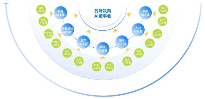借助AI原生ERP,企业可以构建起一个由多类AI智能体组成的顾问网络,覆盖战略决策、采购、销售、库存、计划、生产、供应链、财务、市场、人力等关键环节。从战略制定到业务规划,再到一线执行,AI能够实时洞察、智能拆解并在授权范围内自主执行,推动企业管理从依赖经验迈向AI全程驱动与协同的根本跃迁。